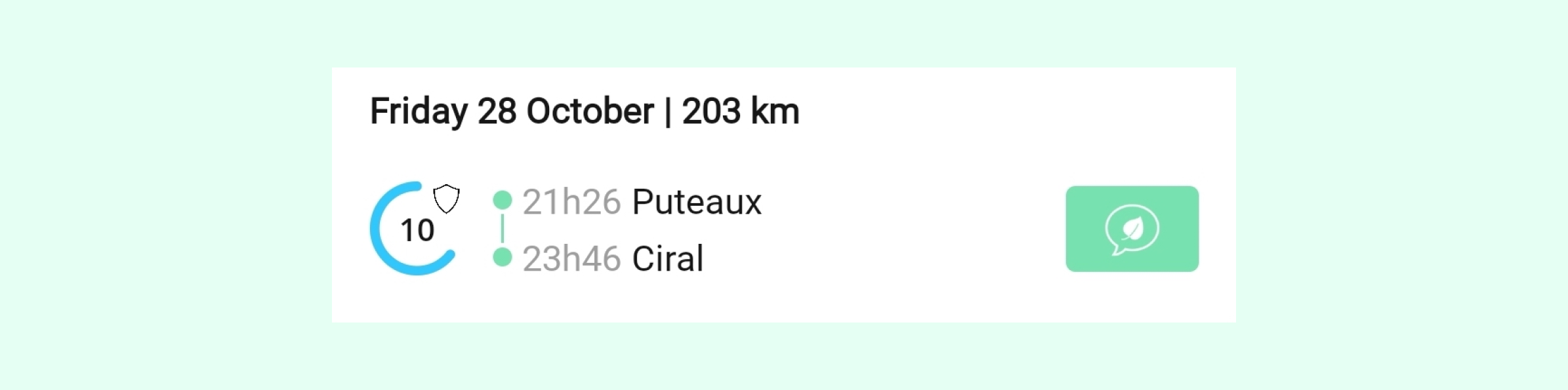 With the last trip widget, the driver can get a quick overview of his last 10 trips with a simple swipe.